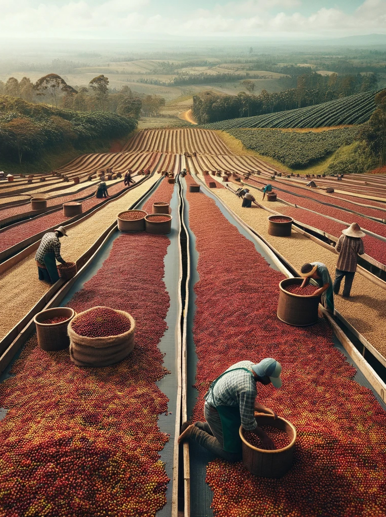 Post-harvest, the beans undergo meticulous drying and milling processes. This phase is instrumental, prepping the beans for their impending global voyage, ensuring they carry their authentic tastes across borders.